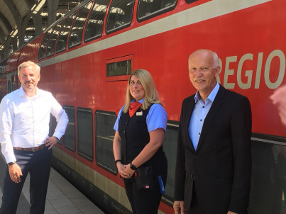Dazu traf er sich am Bahnsteig mit dem Vorsitzenden der Regionalleitung bei DB Regio Nord, Torsten Reh, und Kundenbetreuerin Stephanie Schlorf,